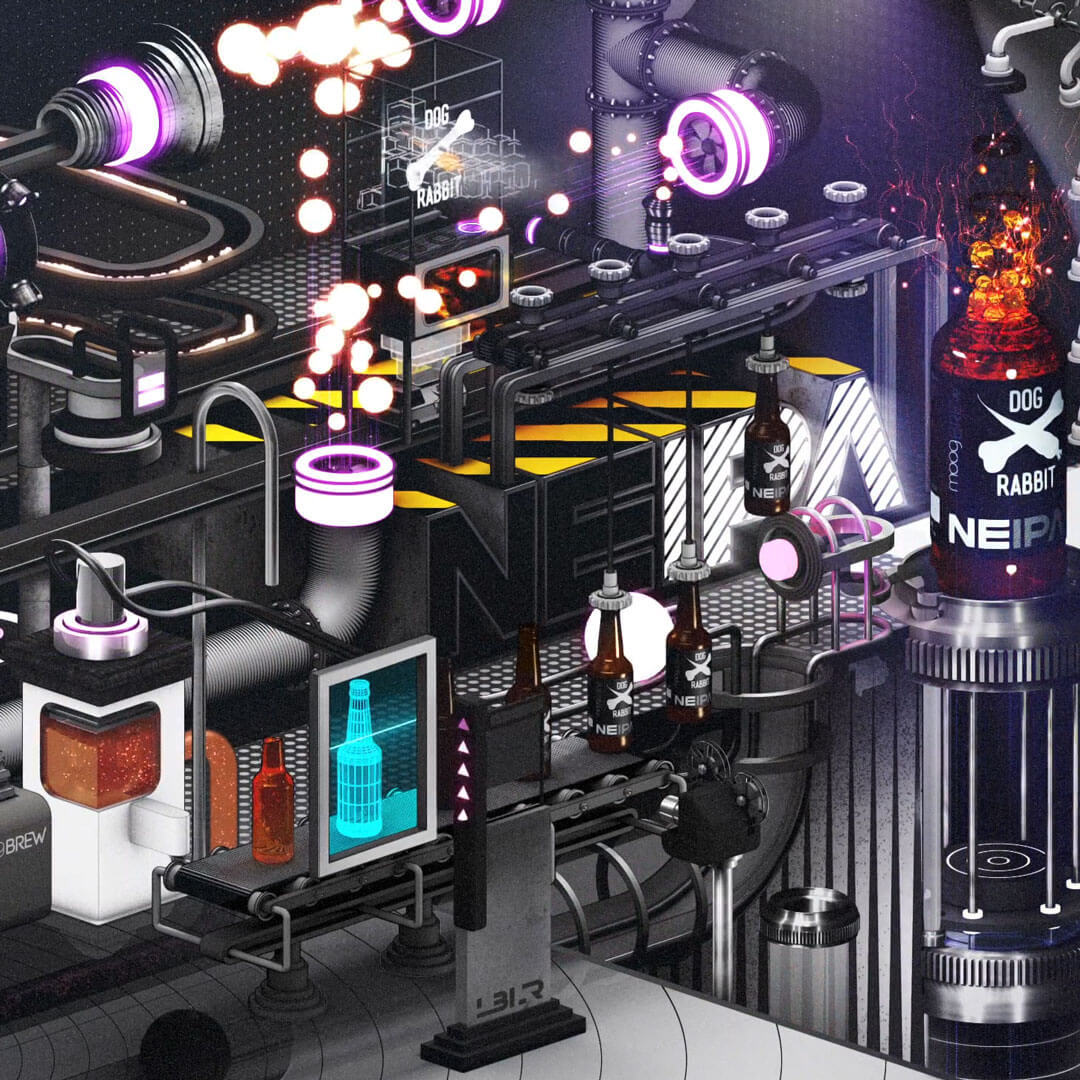 Promotional isometric animation loop made for Dog & Rabbit beer.